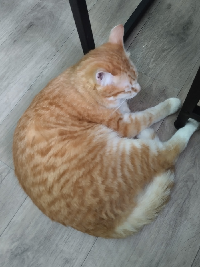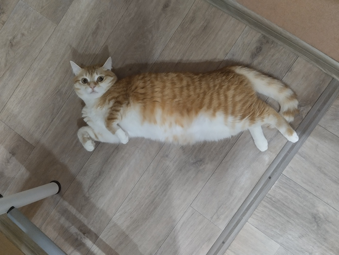 На этом контрасте я понял, что Огурцу не хватает активности. На диету мы его посадили, но этого мало — нужно двигаться. Фигура кошки, грация картошки — это как раз про нашего. В природе кошки много бегают и лазят по деревьям. У нас дерево заменяла когтеточка на ножке стола.