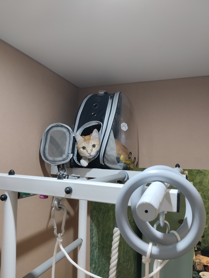 Вечером Огурчик пришёл проверить, что изменилось. Подъём от пола до самого верха занял не больше двух секунд. Наверху он забрался в любимый рюкзак в ожидании ужина.