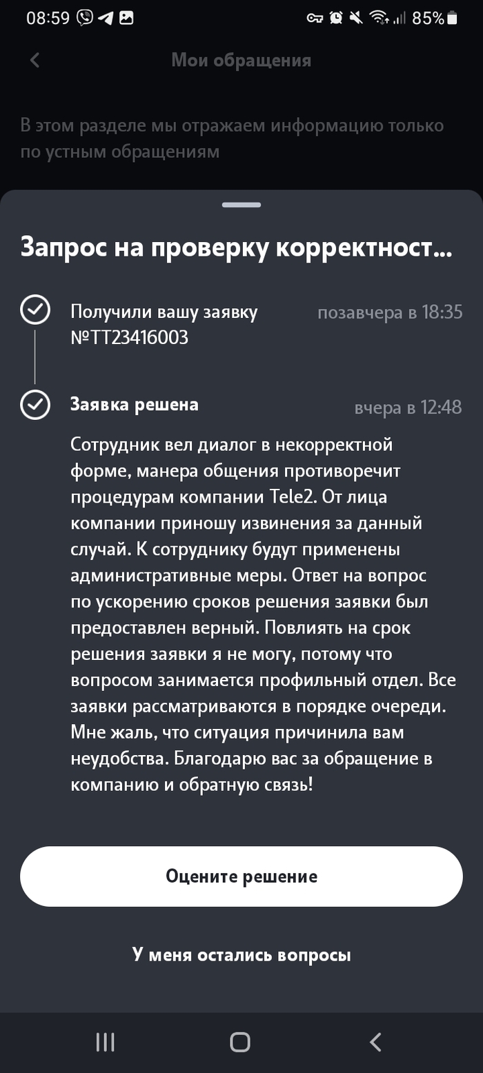 Я наверно, как и многие люди не люблю менять, то что хорошо работает, но данная ситуация просто выбесила, не уверена что и после продолжу пользование теле2. Пишу все не это не ради рейтинга, а просто что бы излить душу.