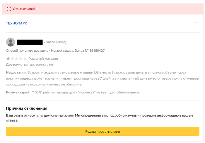 Который (спойлер), конечно же, отклонили. Потому что подробно изучили данный отзыв и проверили информацию.