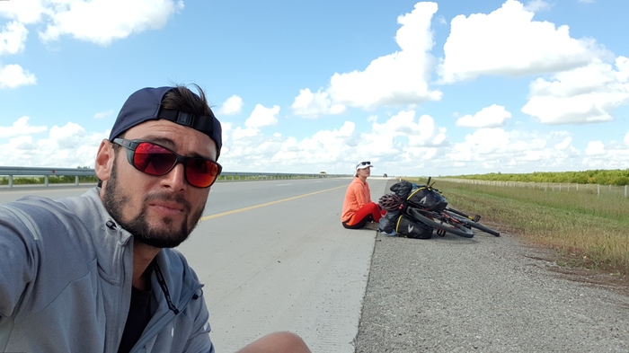 Завалились спать на пару часов, около 16:00 стало немного прохладней, едем дальше под уже привычное приветствие встречных водителей, кстати в начале пути мы очень активно им махали, оборачивались, а теперь уже обходимся кивком и улыбкой)