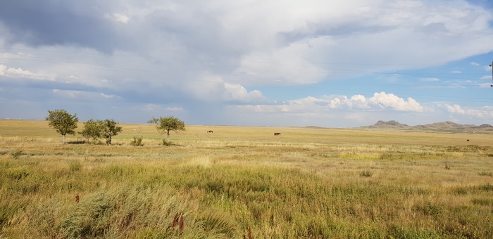 Пока ждали обед, вышел на улицу и попал под уже привычные вопросы «Куда, откуда и т.д.», оказалось что за соседним столом едут земляки, т.е. кокчетавцы (город на сервере Казахстана)! Предложили довезти наши тяжелые вещи до Кокчетава, а потом и вовсе посоветовали все бросить нахер и ехать на поезде, реально сочувствовали), до Кокчетава в том момент было еще около 1100 км… но мы не сдаемся, обмениваемся пожеланиями доброго пути и прощаемся.