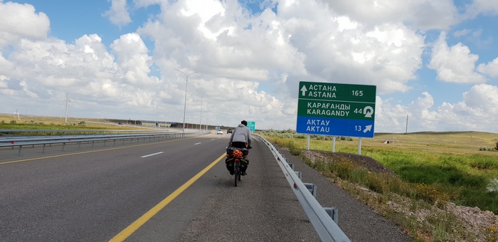 День 11. Сегодня очень бодрый настрой, наслышан что трасса Караганда – Астана, оснащена широкой бетонированной обочиной в 3 метра, по такой дороге катить одно удовольствие.