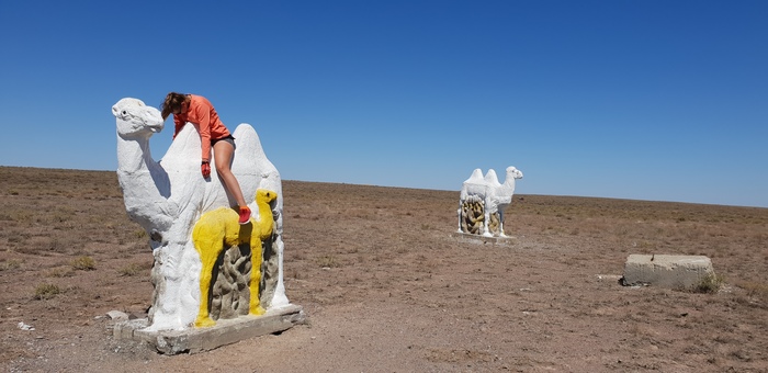 Конечной точкой определили популярное у туристов место, урочище Бектау-Ата, хоть и придется съехать с трассы на 8 км. но это того стоит, об этом месте подробнее в следующем посте, а пока впереди еще 70 км. по оплавленной солнцем степи.