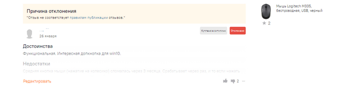 Так вот, за последние полгода мне не удалось опубликовать ни один отзыв, так как кроме хвалы товару я еще указываю на его особенности и недостатки. Причем эти недостатки не являются браком, как "с уважением" сообщает мне об обратном очередной "специалист по работе с обращениями".