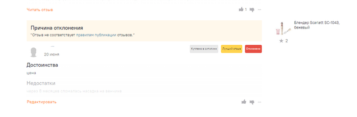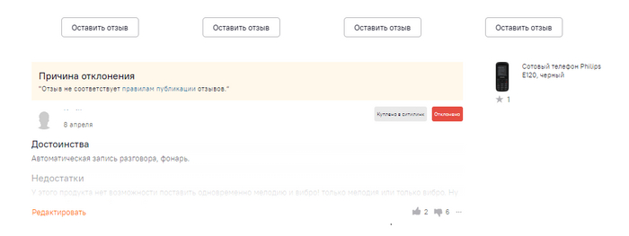 Массовое удаление плохих отзывов на сайте ситилинк?