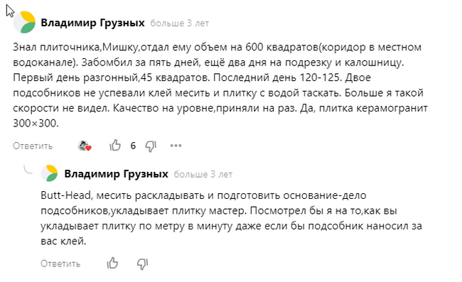 Одно дело, когда речь идёт о крупном объекте, где нужно идти "по полу под гребень", и совсем другое - элитный ремонт, где я тружусь последнее время.