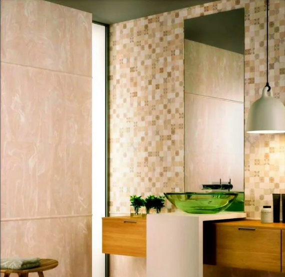 А на таких картинках, как минимум, не учтено, что у плитки "гуляют" размеры до 2-3 мм, например. Это первое. Второе, что касается плитки "под мозаику". За всю свою практику я ещё ни разу не видел достойной (достоверной) имитации мозаики, чтобы она выглядела достаточно естественно. Обычно, даже на расстоянии нескольких метров сразу бросается в глаза, что это дешёвая подмена. И даже если плитка - ректификат (обрезная, без закруглённых краёв) + у неё почти идеальная геометрия, всё равно - подмена видна в месте стыков разных плиток (швы "мозаик" во многих местах не стыкуются).