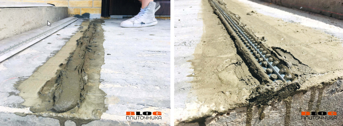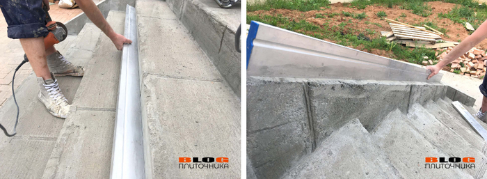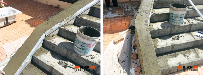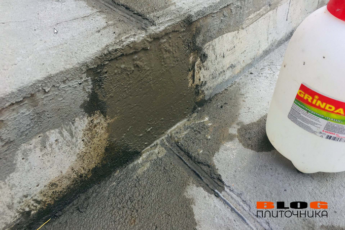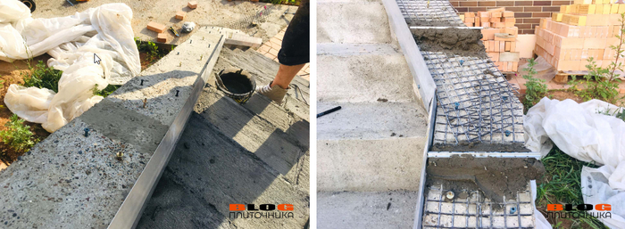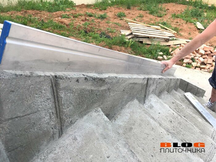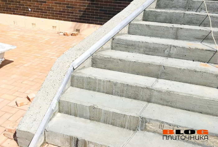Наглядно видно насколько “ровно” была до этого залита бетонная лестница. Причём она была вся такая.