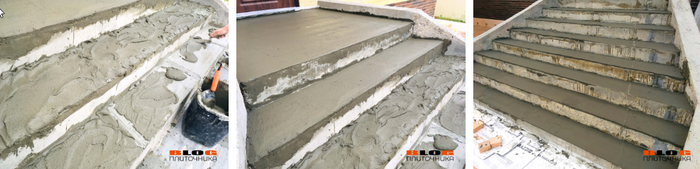 По мере выравнивания ступеней производилась укрывка от солнца, чтобы смесь не отдавала слишком быстро влагу.