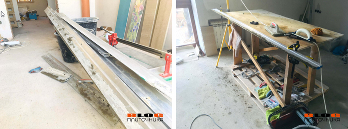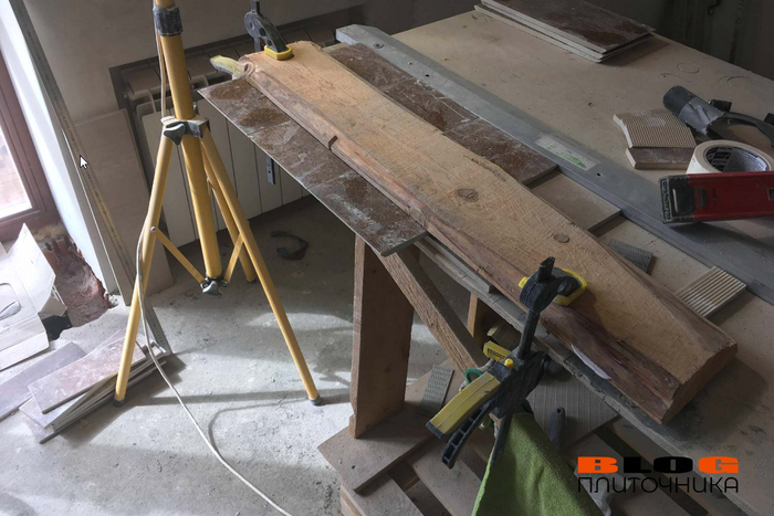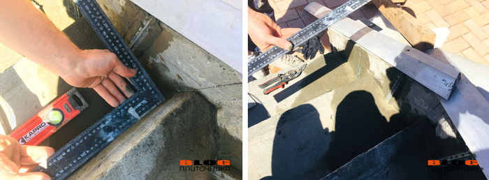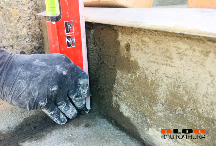Возможно, это может показаться неочевидным, но этот этап был одним из самых сложных и ответственных. Крайне важно было учесть как в перспективе будет “ломаться” плитка в этом месте. Учесть толщину плитки, слой клея и то, что внешние углы у плитки на боковинах будут по 45 градусов.