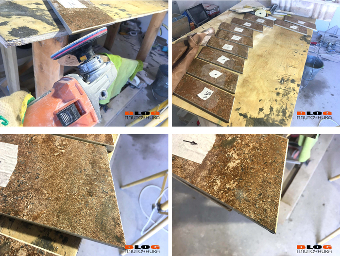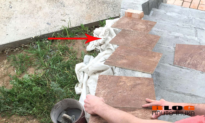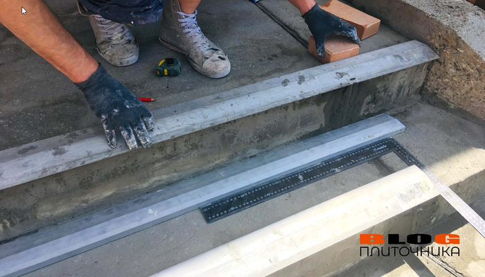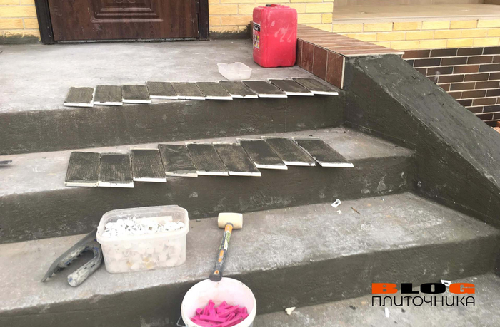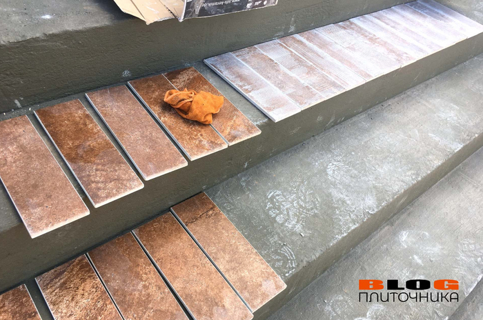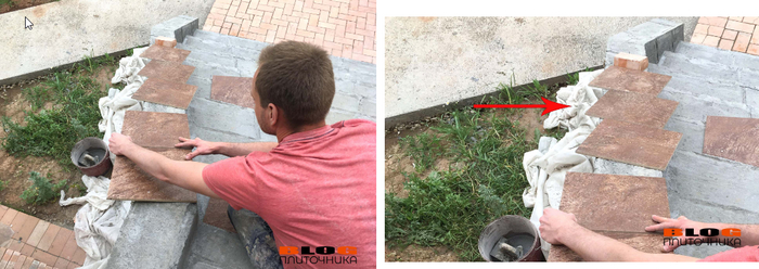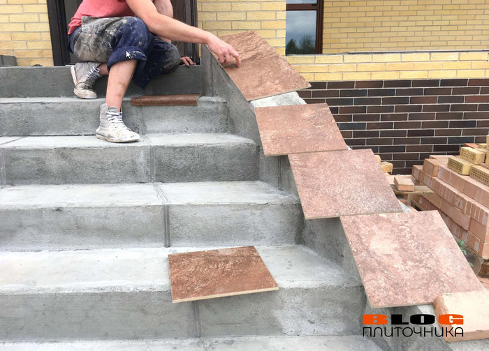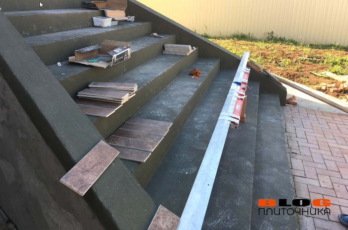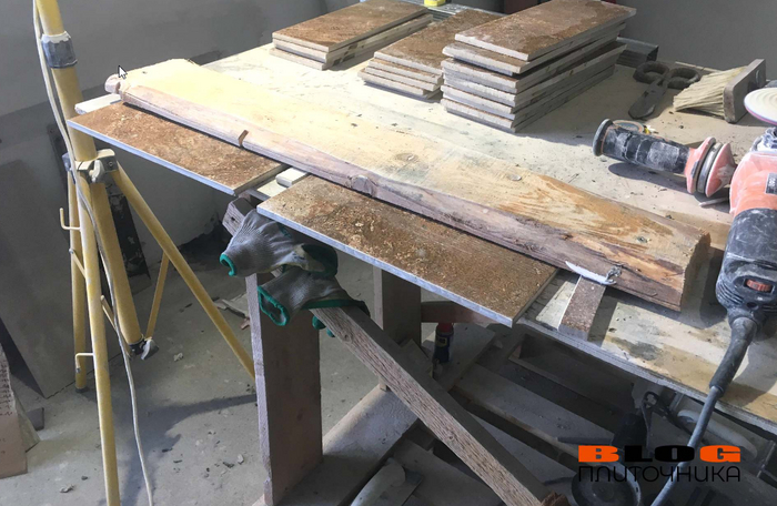 Прежде чем приступить к шлифовке, резке и зачистке мы разложили плитку на ступени, чтобы:
