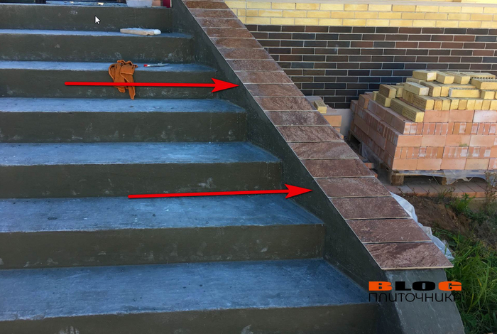 Возникла проблема: размера плитки не хватает по ширине, если укладывать параллельно лестнице. Если делать параллельно боковине (ёлочкой), то смотреться будет крайне некрасиво.