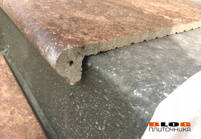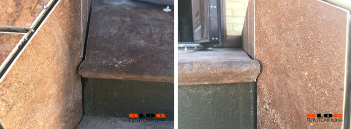 На это мне тоже указали в комментариях. Да, это было бы и красивее и долговечнее, чем заусовка. Впрочем, за счёт этого случилось бы сильно удорожание (стоимость ступени с капиносом значительно выше, чем обычной клинкерной плиткой) + плитка уже была вся закуплена.