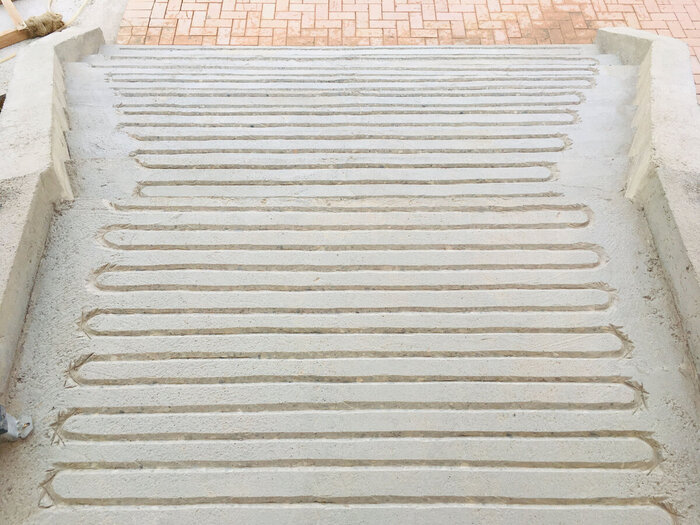 Цель монтажа кабеля понятна чтобы зимой не было проблем с чисткой. Крыльцо лишь частично под навесом. А долбление и чистка разного рода наледи легко может привести к резкому уменьшению срока службы облицовки крыльца.