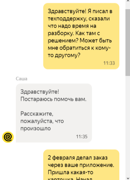 Написал в тех. поддержку - меня сначала игнорировали, потом переносили сроки, в итоге сказали что ничего не могут сделать, но обязательно разберутся с курьером.