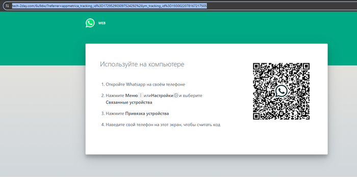 Я перешёл по неизвестной ссылке, которая явно не принадлежала WhatsApp, и увидел окно входа по QR-коду. Дело было закрыто, и я смог расслабиться. Жене я ещё раз напомнил о том, что так делать нельзя.