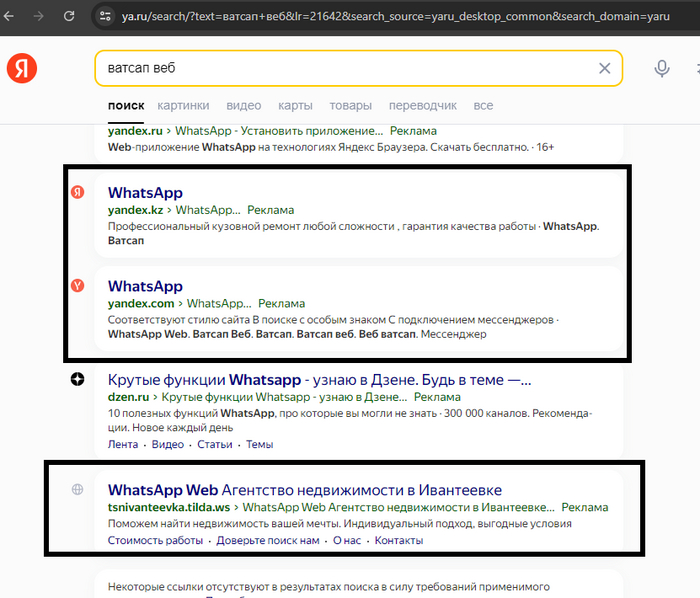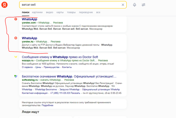 Позже я сел за компьютер и начал искать, откуда взялись эти ссылки в Яндексе, и каково их количество. Честно говоря, от количества ссылок у меня глаза на лоб полезли. Но это уже совсем другая история. Но если вам интересно как Яндекс зарабатывает совместно с этими мошенниками и просто напрочь отказывается что либо предпринимать то вам сюда (Яндекс помогает "взламывать" WhatsApp). Там расскажу о двух дневной битве с Яндексом который способствует преступникам!