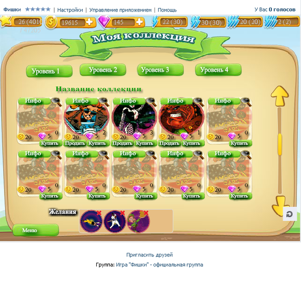 Всего в игре 26 коллекций. Они разделены на 4 уровня.