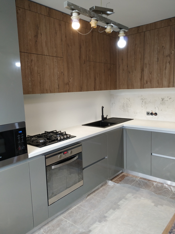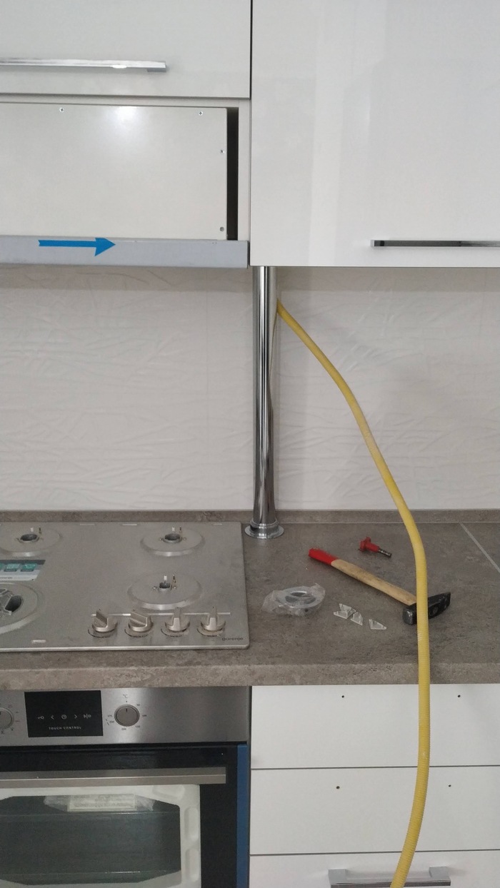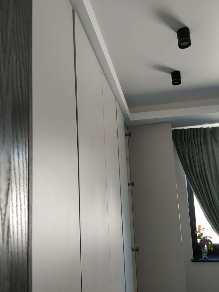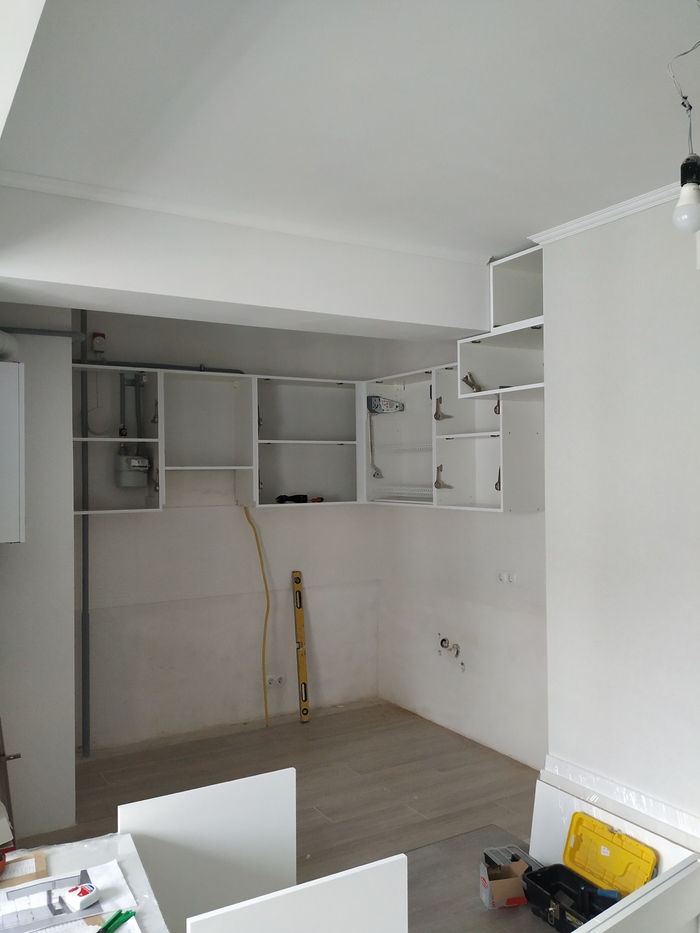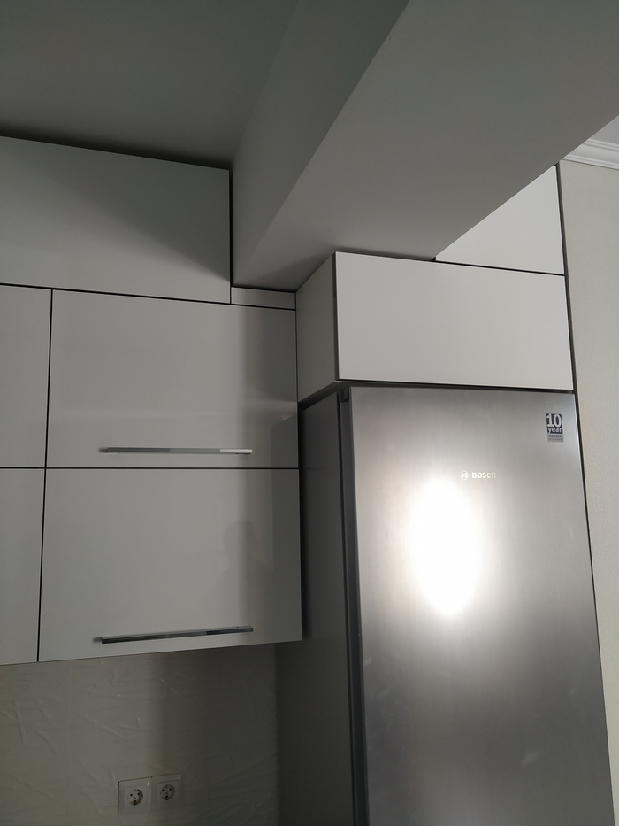 Важно! Перед тем как ставить фасады, проверьте корпус строительным уровнем со всех сторон. Есть вероятность что если не ставить шкаф по уровню то фасады "поплывут" как на фото.