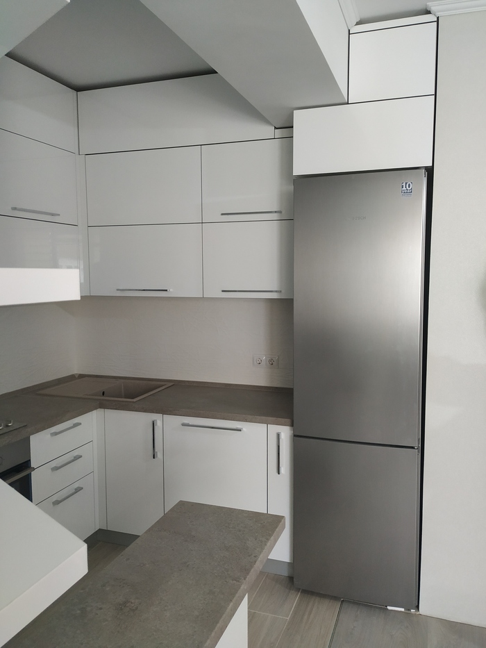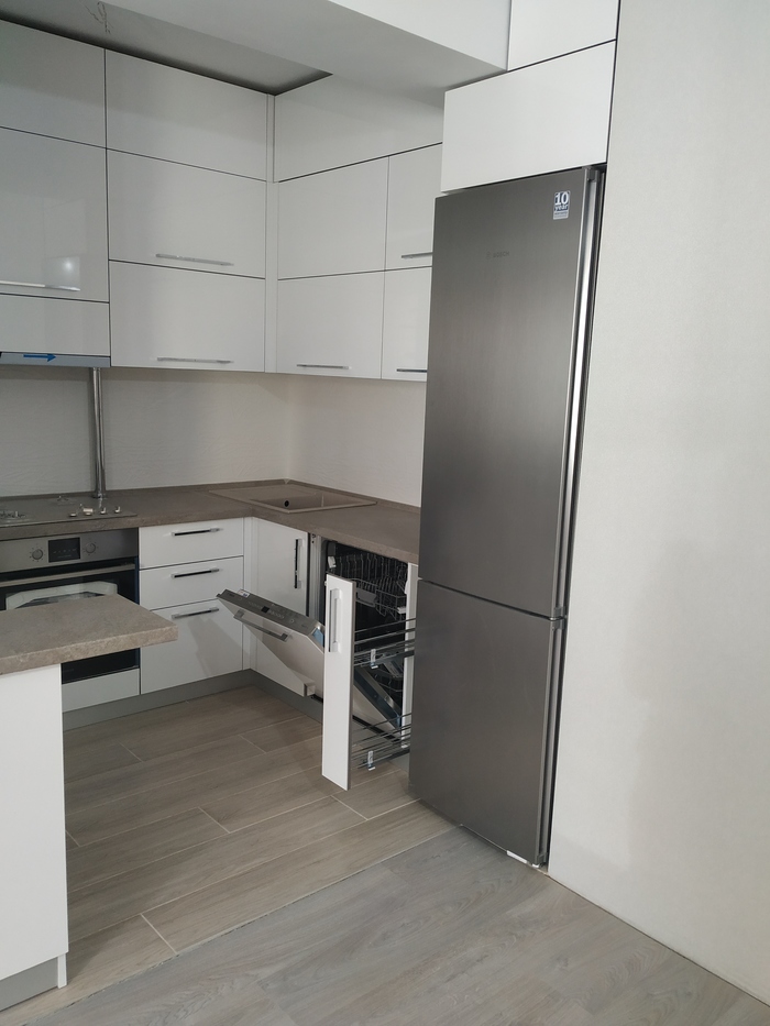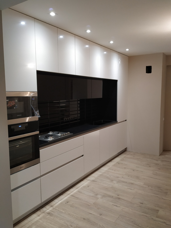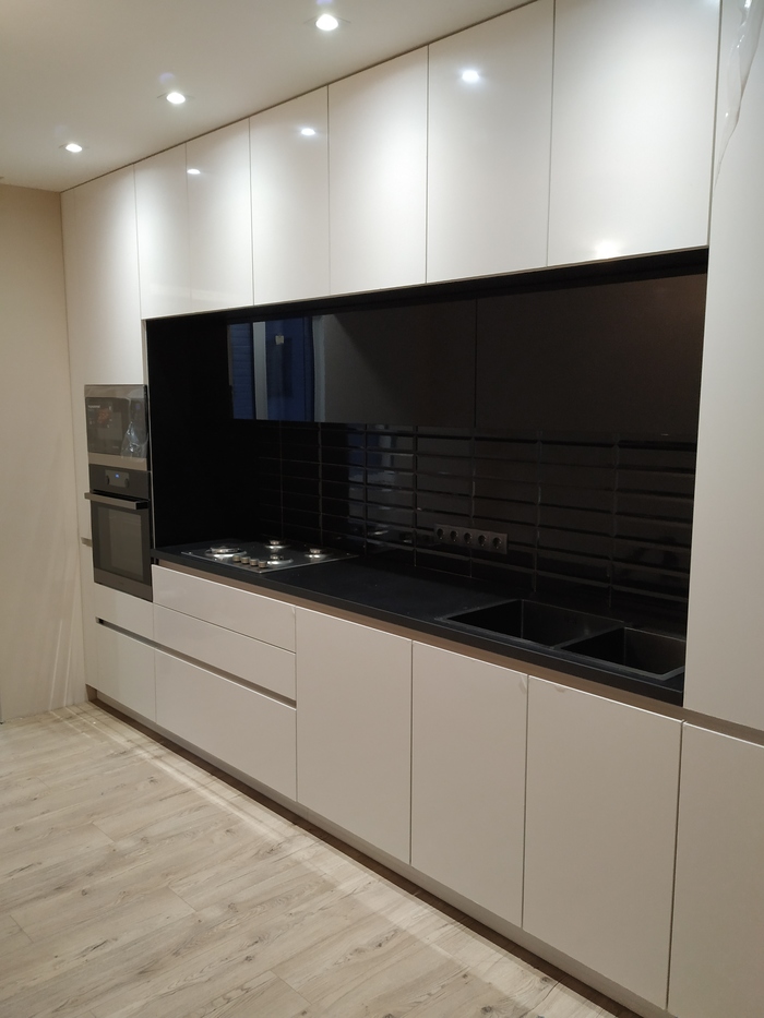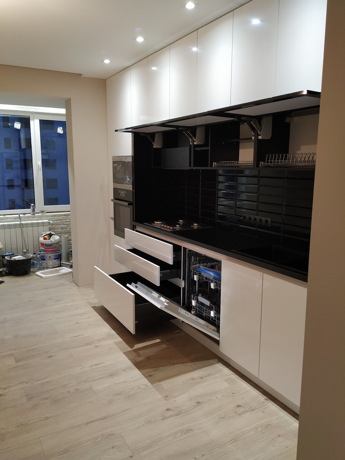 Важно! Перед тем как ставить фасады, проверьте корпус строительным уровнем со всех сторон. Есть вероятность что если не ставить шкаф по уровню то фасады "поплывут" как на фото.