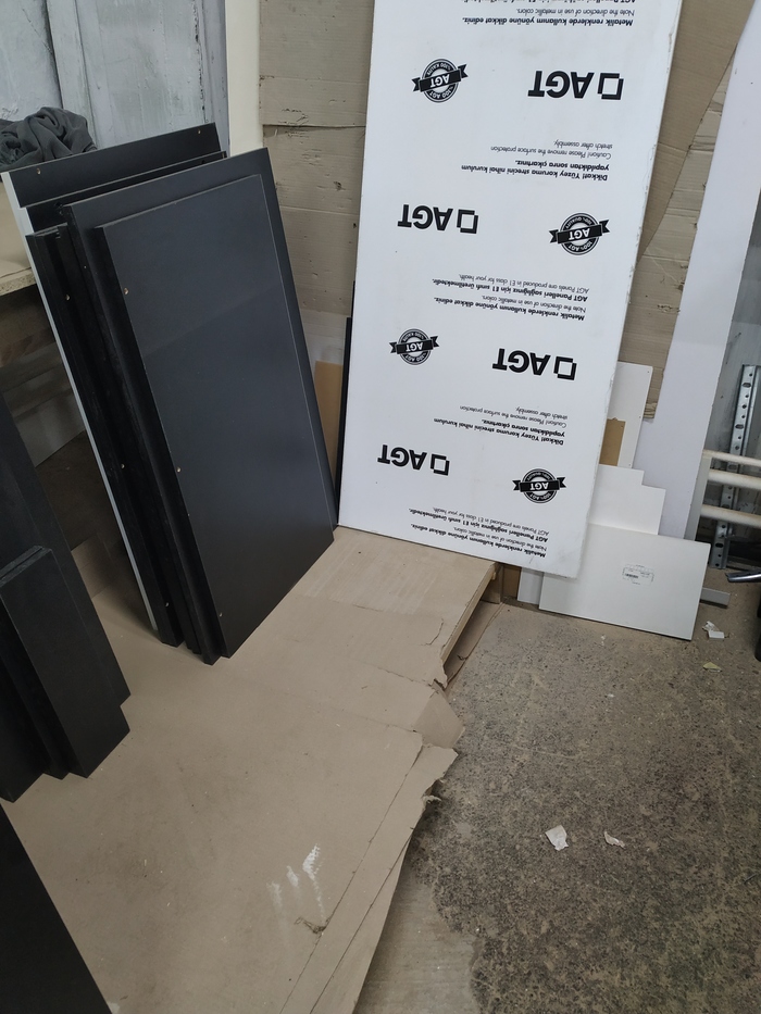 4 плиты белого и 1.5 серого ДСП. ABS-а 0.5 130 м