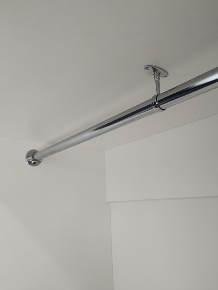 Трубу, между овальной и круглой выберите круглую, она надёжней, при ширине шкафа от 1м хорошо бы поставить дополнительную опору с креплением в корпус шкафа по середине трубы.