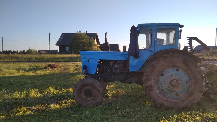 Синий трактор тестя,на котором он ездит по полям.иногда в прицепе ещё возит тещу а она песенки поет