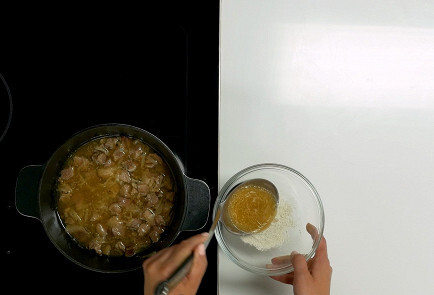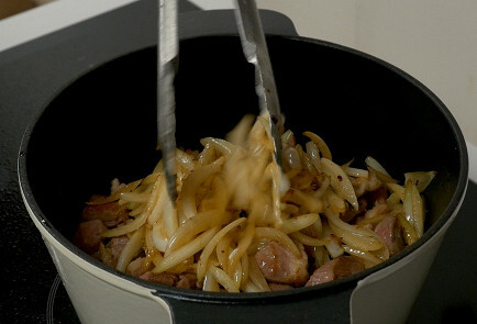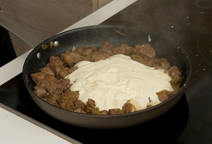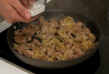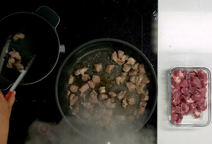 5 Выложить подготовленное мясо. Все готовить до состояния, когда мясо покроется зажаренной корочкой, около 10 минут.