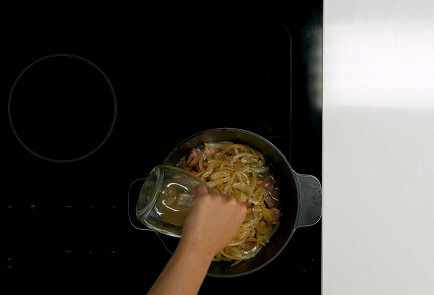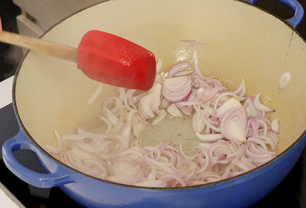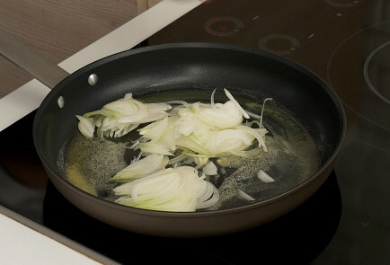 2 Очистить, помыть и нарезать тонкими полукольцами репчатый лук.