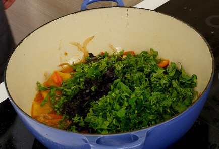 6 Затем добавить морковь. Обжарить все вместе, помешивая, 3–5 минут.