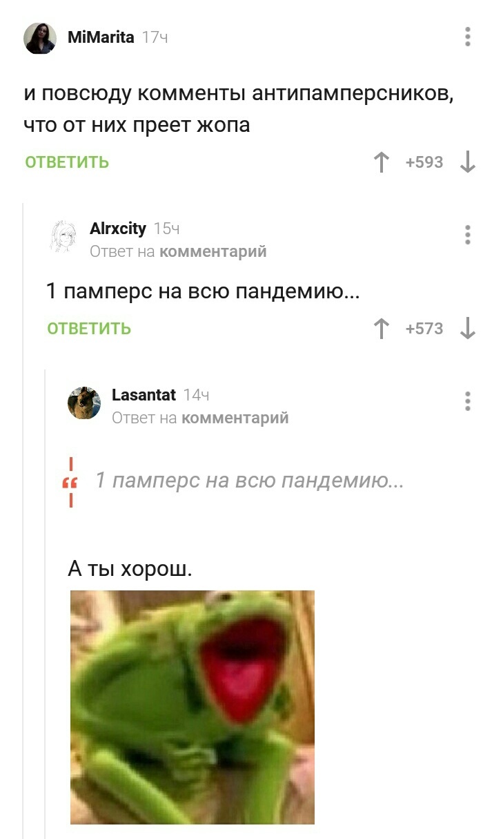 Синие рыбки, жёлтые капельки жира и красные не помню яблоки/мясо.