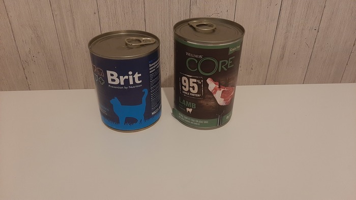 Консервы были обнюханы и чуть не съедены прямо с банкой. Фото довольных животин прилагаю