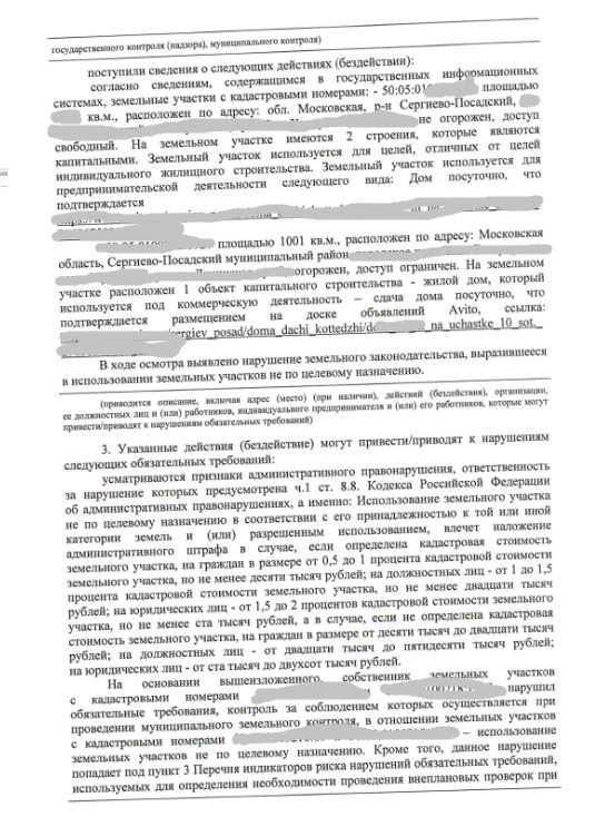 - Местной администрацией, на предмет нецелевого использования земли и т.п.