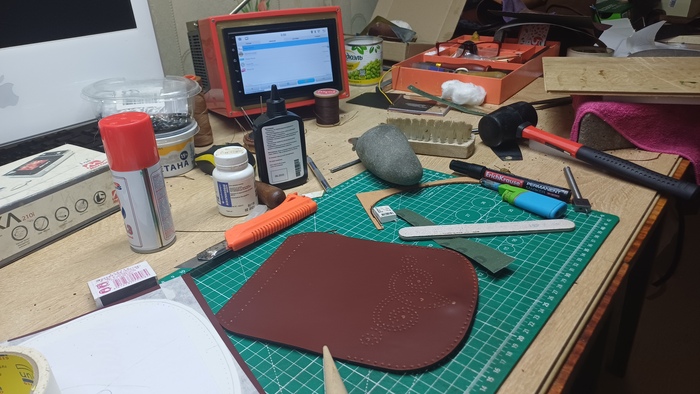 Постепенно обзавёлся инструментами, даже выделил комнату под мини-мастерскую (благо, живу один). Такси, конечно, не бросил, но теперь, если вечером есть силы — сажусь за кожу.