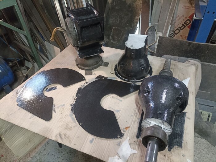 Перво-наперво перебрал электромотор. Проточил ротор, поставил новые подшипники - офигеееть! Зашелестело! А там и корпус своей участи не избежал. Отломанное припаял бронзой, а потом, пользуясь трудом сыновей, зачистил и загрунтовал скорлупу станочка.