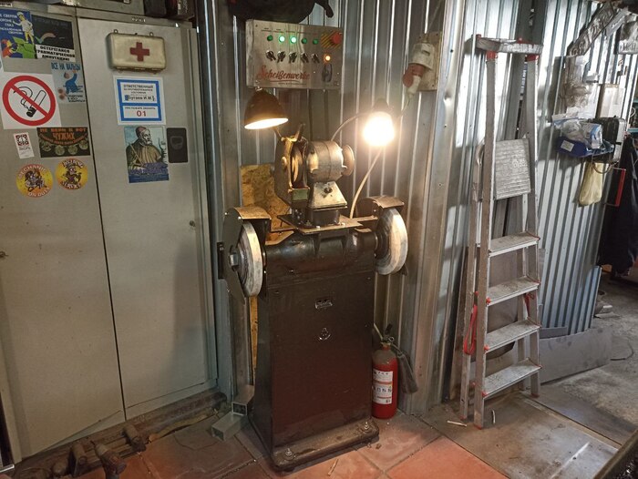 Здорово, парни. В прошлом году случилось так, что я поехал на распродажу цеховой мебели (ну эти вот зелёные совецкие пристаночные тумбы), а заодно купил удроченое немецкое точило на середину прошлого века. Ну блин, зарекался брать деньги на такие поездки, ну так мне уже даже на отсрочку отдают. Негодяи. :) Вощем, притащив точилку в норку и осмотрев его внимательно выяснилось, что подшипники уже всё, корпус расколот и держится на краске. Окей. Давайте разбирать.