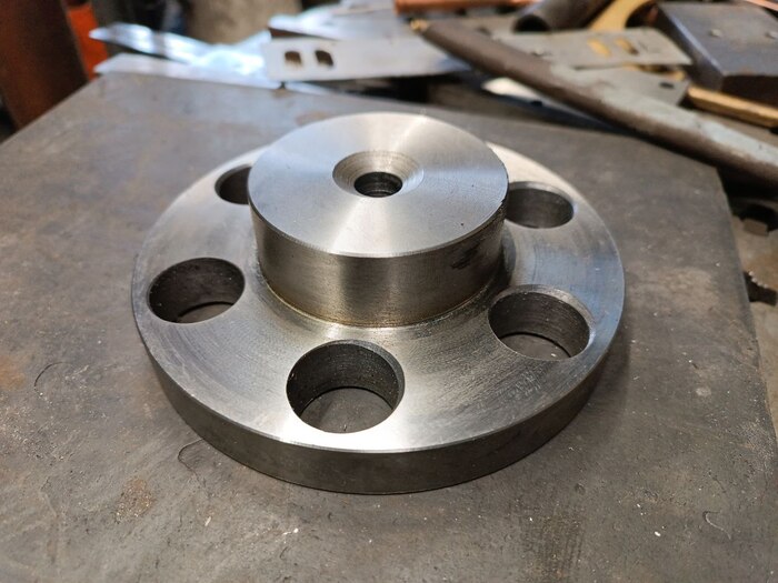 Окей. С чего начинается муфтостроение? Ну разумеется с составления чертежа. Даже в такой простенькой детали есть варианты накосячить. А учитывая её размер, заготовка стоит порядка 2500 (с доставкой). Не хотелось бы её зафачить. Это ж я в таком разе на 2500 меньше заработаю. После чертежа, переходим на токарный. Впрочем на токарном-то любой может... Как и на фрезерном, на каком были выполнены расточки под резиновые демпферы.