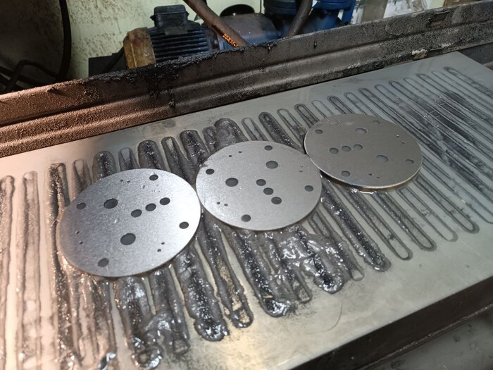 Это "дырки" от листовой нержи тройки, в которой я резал пробные отверстионные дырки.