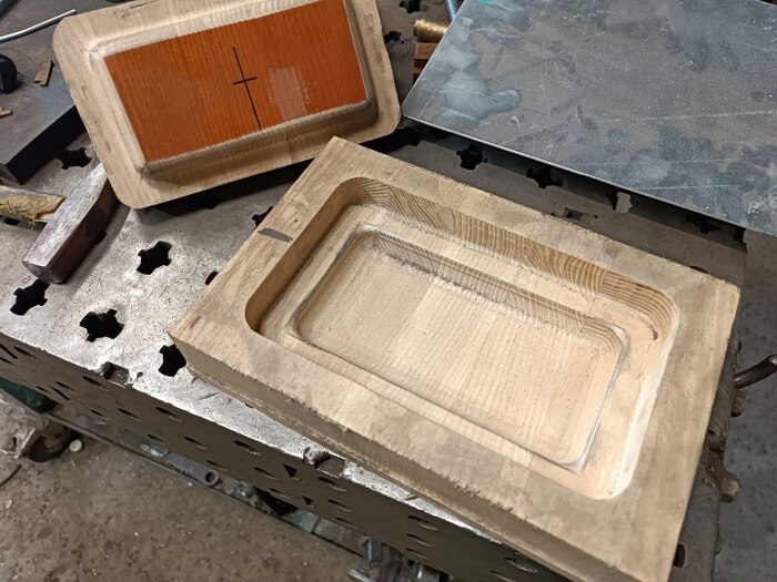 Опосля, включается ЧПУшка и вырезает прессформу из остатков буковых ступеней, отданных одним заказчиком за ненадобностью.