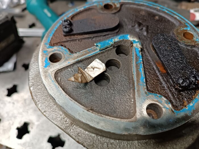 А то, что помыто - ставлю на плоскошлиф и шлифую привалочные. В данном случае, шлифуется горшок сверху.