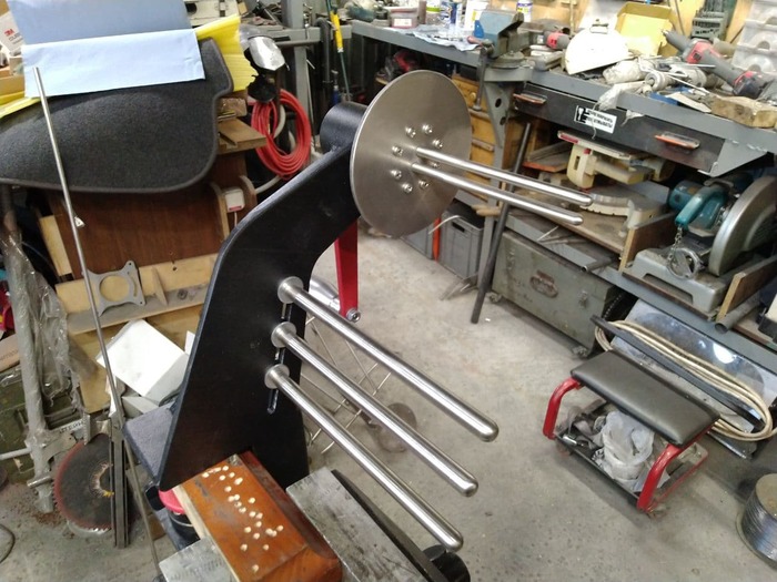 Длина консоли - метр двадцать. Седло весит около 10 кг. И да. Шкаф сделан из алюминия 1,5мм. И он держит. :)