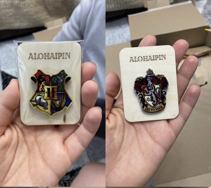 И теперь начинается все самое интересное. Два значка Гриффиндор и Хогвартс (это так мило!!!)