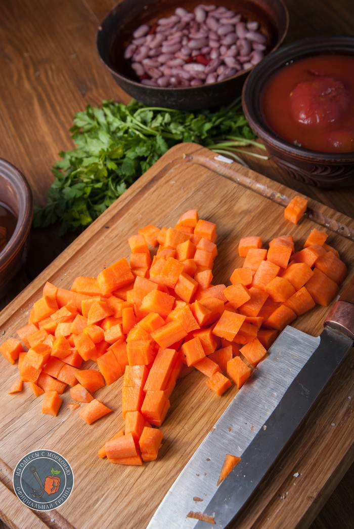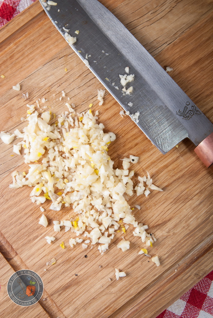 - 3-4 зубка чеснока. На чесноке не экономьте- он здесь один из главных парней.