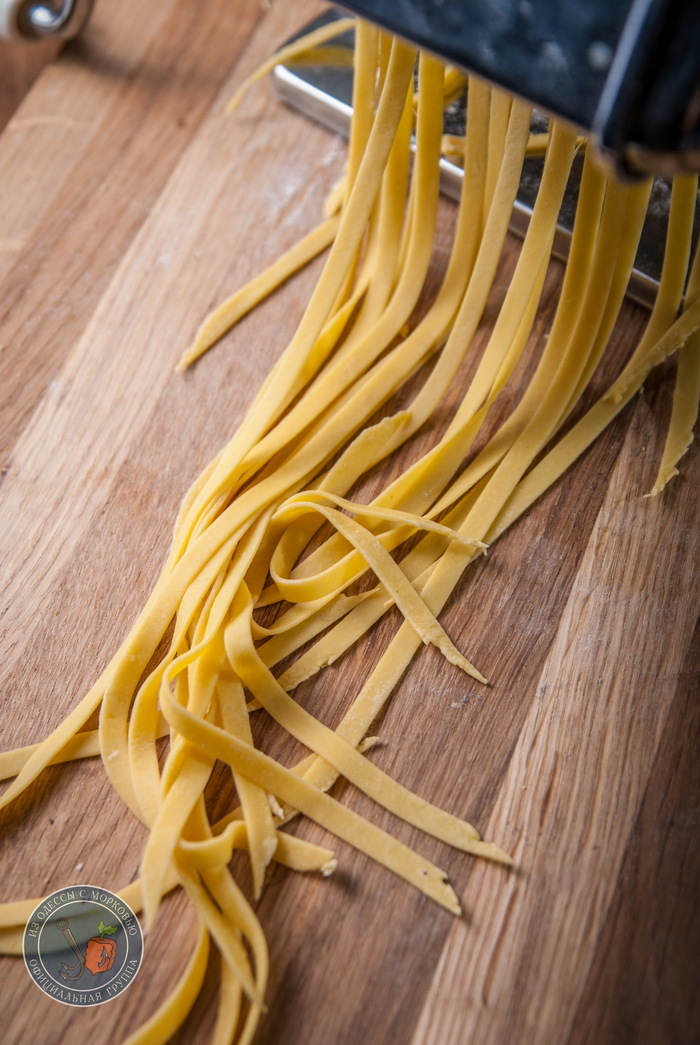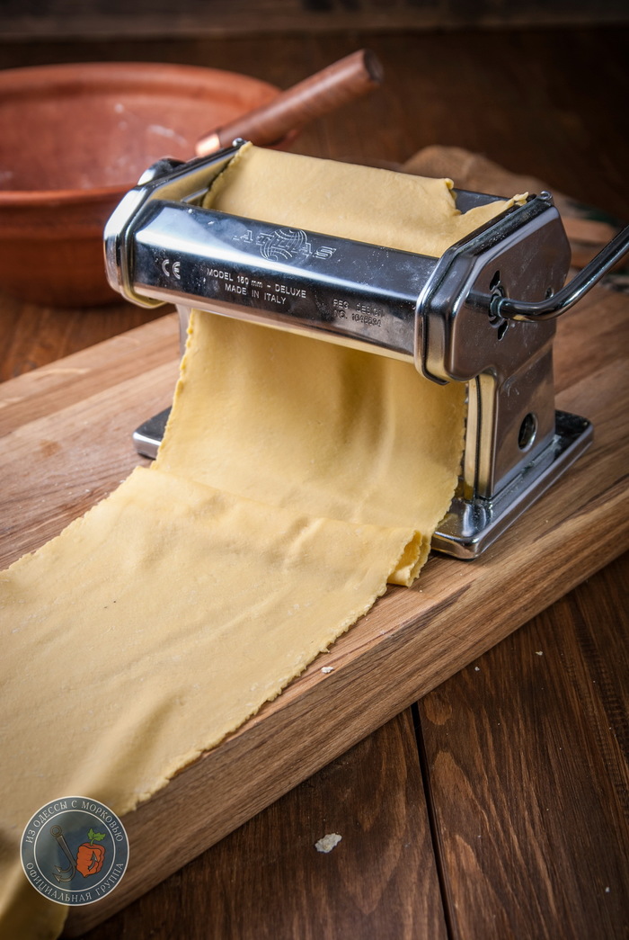 - В случае использования паста-машины все эти действия облегчаются. Машинка сама раскатывает и нарезает- крути только ручку и регулируй толщину валиков.