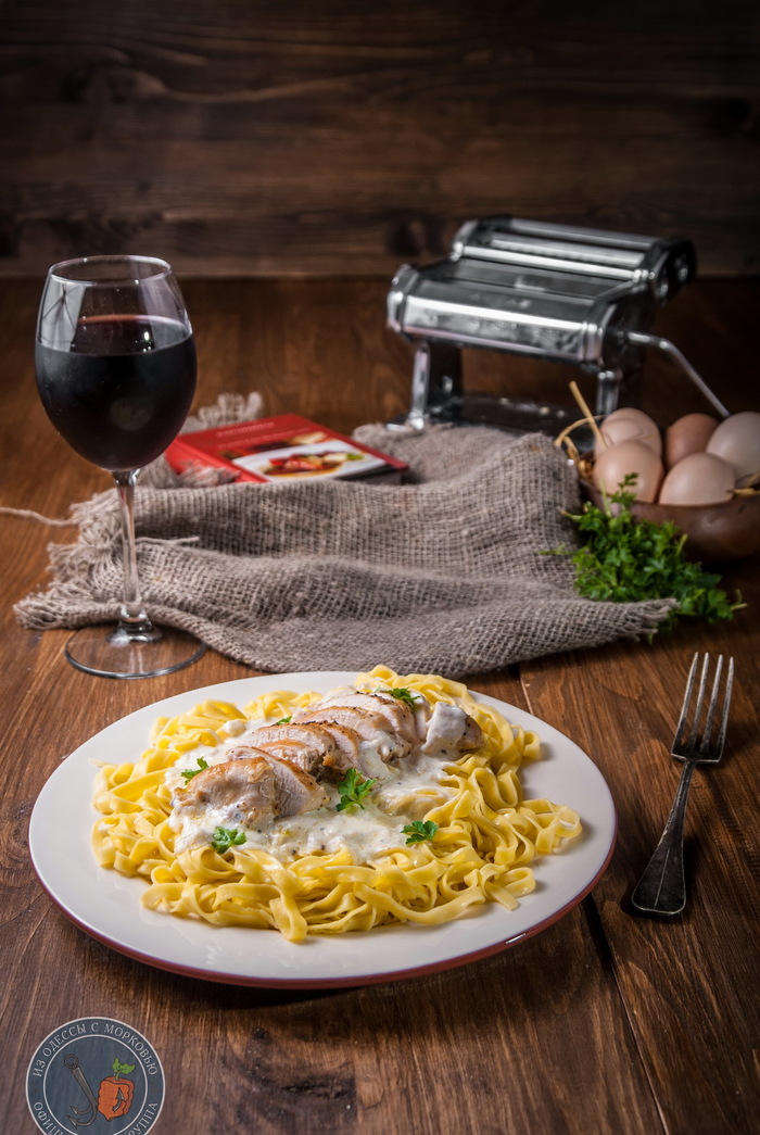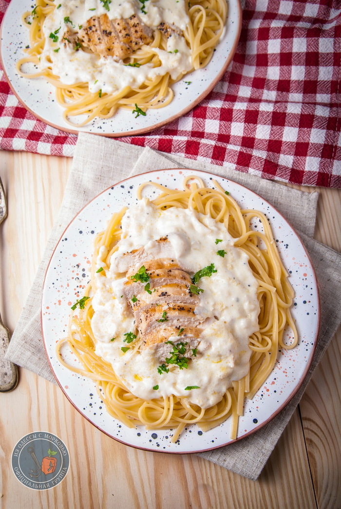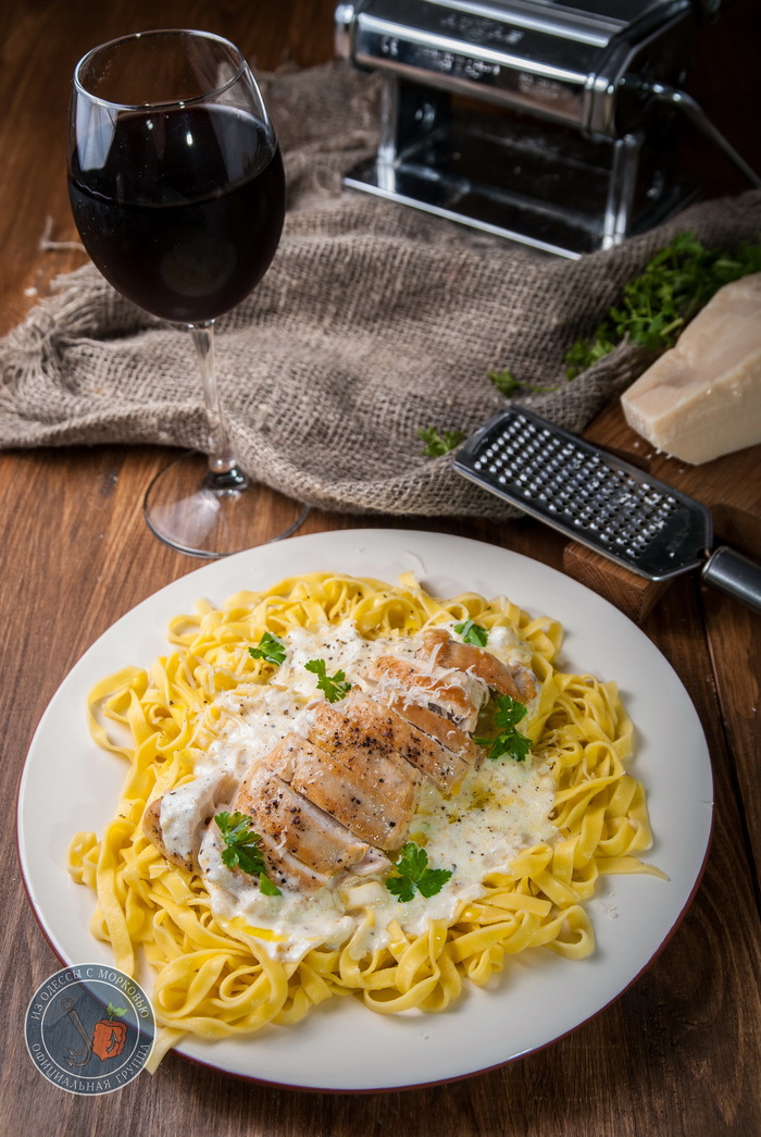 - И да, под настроение я готовлю Альфредо с одним только соусом. Просто сливочное масло, чеснок, сливки и сыр. Соуса делаю много и получается просто космос.