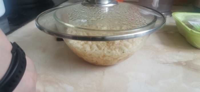 Через 5 минут она не то, чтобы не заварилась до идеального состояния, нет. Она вообще ничерта не заварилась. Я размял полумягкий брикет вилкой и оставил ещё на 5 минут. И на выходе получил из полумягкого брикета полусъедобную лапшу.