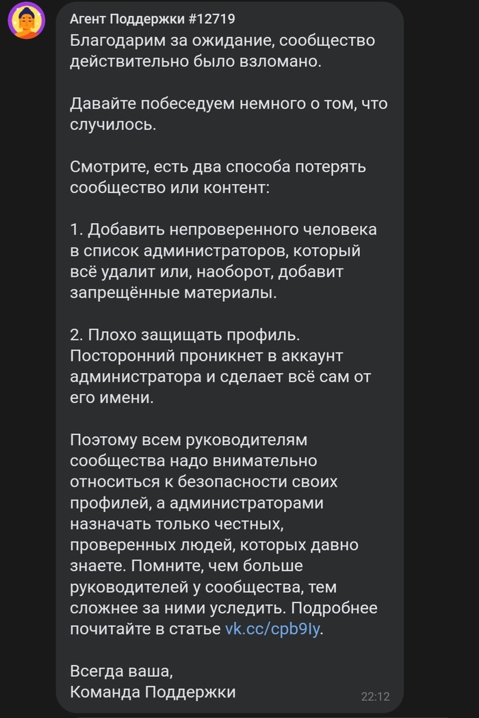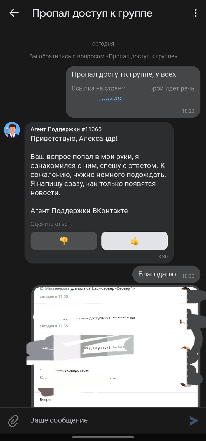 Рабочий день проходил своим чередом, стою на баре, принимаю заказ и тут настойчиво несколько раз звонит рабочий телефон. Женщина говорит о рассылке, в которой находится ссылка на телеграмм, я естественно говорю, что никуда переходить не надо и ничего такого мы не делали... заканчиваю разговор, принимаю до конца заказ и захожу в ВК. И от имени нашего сообщества приходит такая же ссылка.