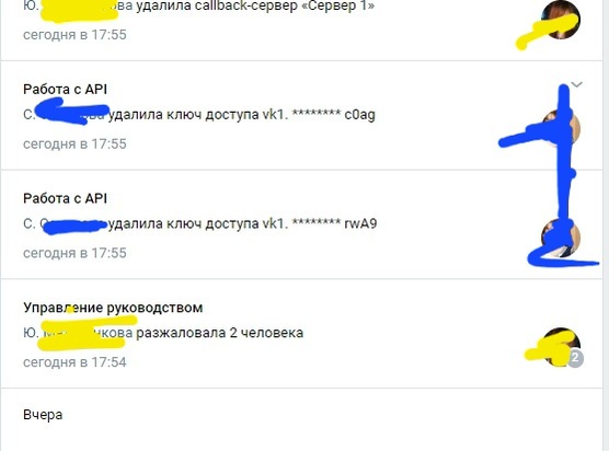 А вот какие манипуляции проводились от имени взломанного пользователя(желтый).
