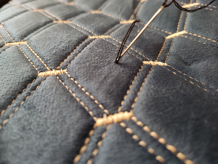PS: пассатижи применялись когда уже пальцы не могли выдернуть иглу. В процессе внедрены элементы подогрева сиденья и спинки, пришитые между новой и старой тканью. Подключение позже. На два передних сиденья затрачено 1 неделя по вечерам. Впереди перетяжка заднего дивана, но только после внедрения подголовников.